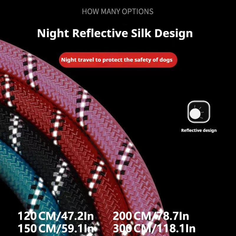120/150/200/300cm pet leash with reflective rope and comfortable handle, suitable for small, medium, and large dogs
